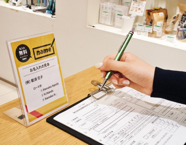 名入れサービスの対象商品をお買い上げのうえ、お申し付けいただくと、即日・無料で刻印が可能です。