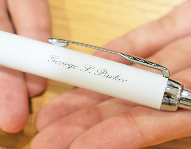 - A:プレゼントでご利用される方が9割ですが、自分自身のお名前を入れられる方もいらっしゃいます。革小物も同様かと思いますが、新入生、新入社員など筆記具をよく使われる方へのお祝いとしてのご利用や、クリスマスプレゼントも多いですね。また、学校行事や大会など「祝 ◯◯」みたいな記念品としてのご利用もあり、80本ほど刻印したりとか。少々お時間は頂きますが、大量注文も承っております。