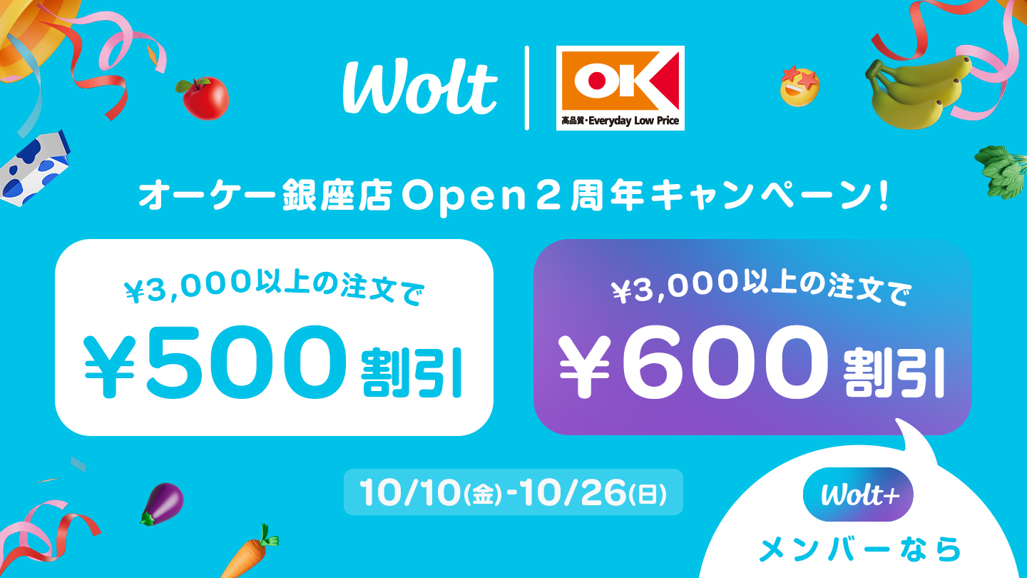 【オーケー銀座店OPEN2周年キャンペーン】Woltキャンペーン