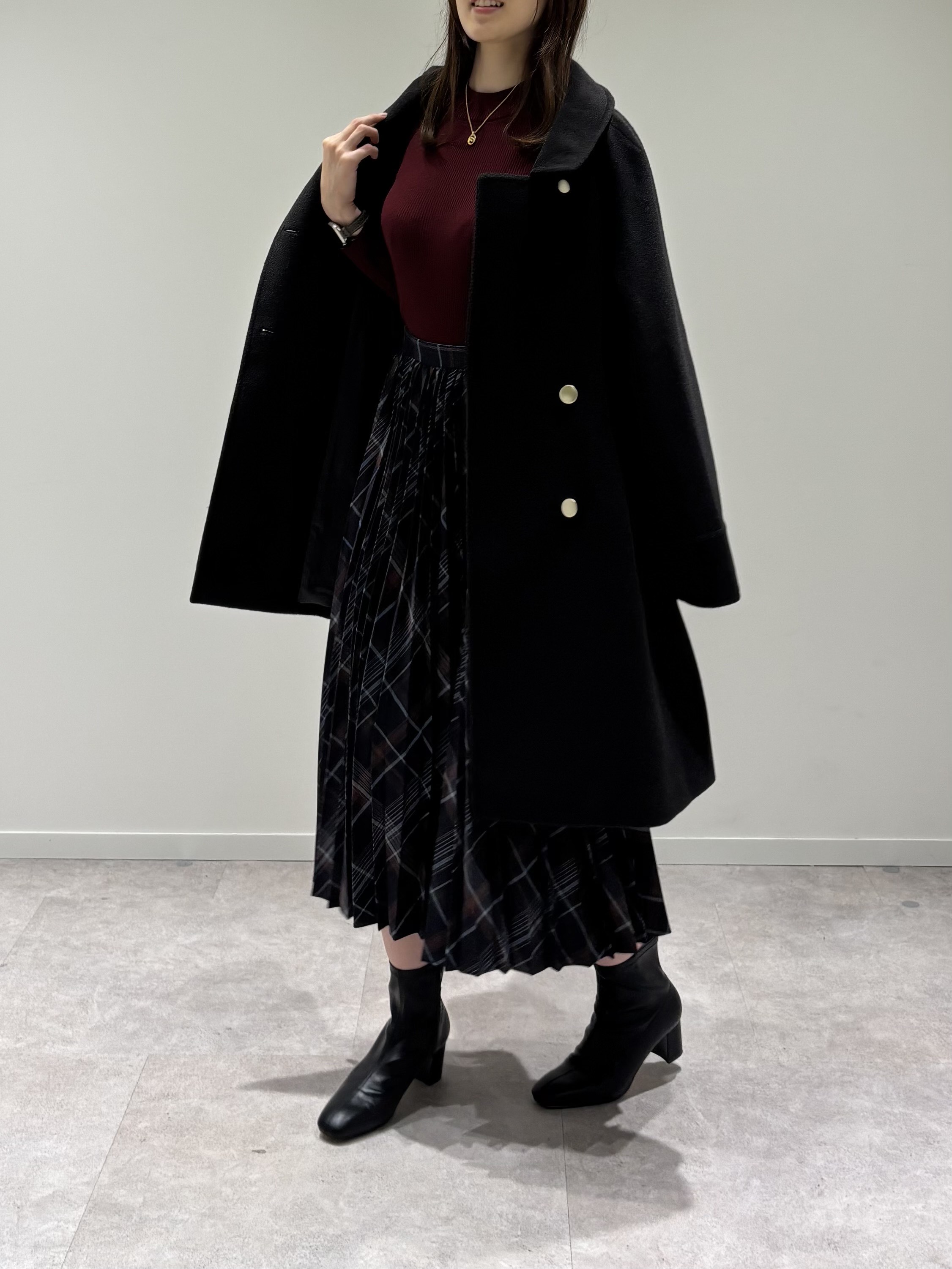 暖かく、お手入れも楽な、理想的な大人のキレイめコーデです。