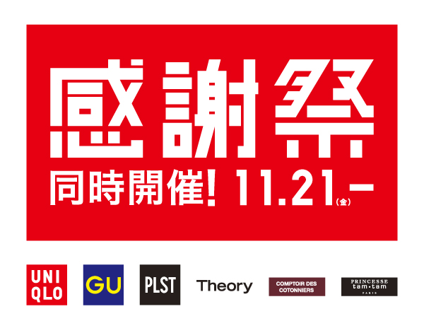 ユニクロ感謝祭は11月21日(金)から11月27日(木)まで!ぜひこの機会にお買い求めくださいませ。