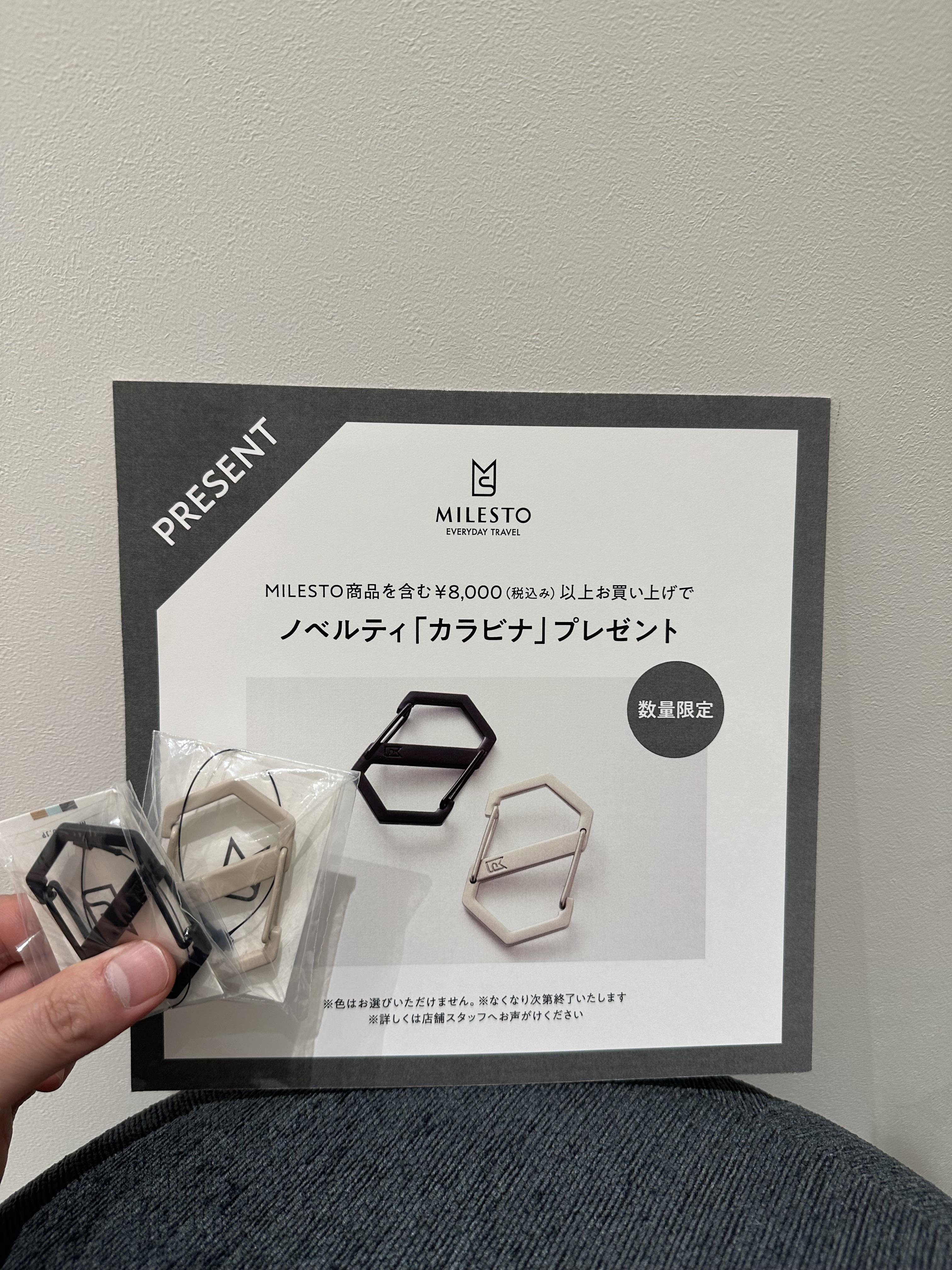 ※期間:4/17~5/31 ・ミレスト商品含む8,000円(税込)以上のお買い上げでカラビナプレゼント!