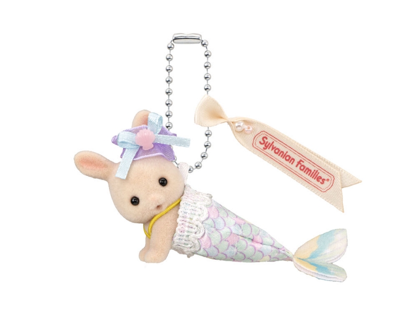 マーメイドのコスチュームがかわいい、みるくウサギの赤ちゃん ヘザーのキーチェーンです。キーチェーンでいつでも一緒におでかけできます。