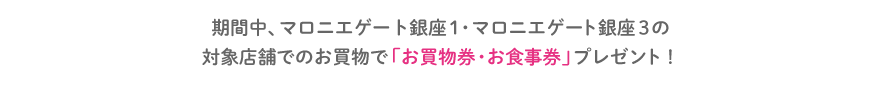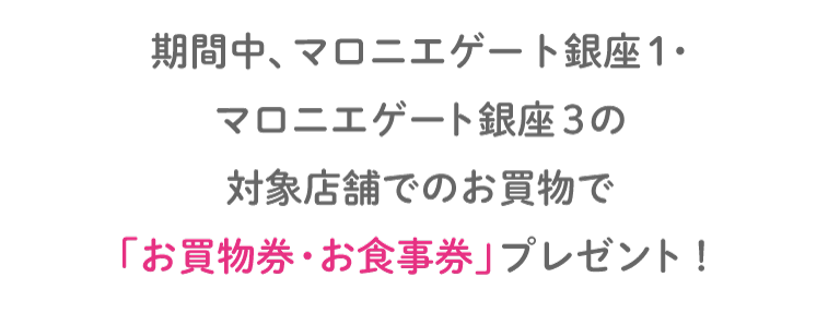 3/19(木)~3/23(月) の5日間限定!マロニエゲート銀座1&3の対象店舗で税込5,500円お買い上げごとに1枚、